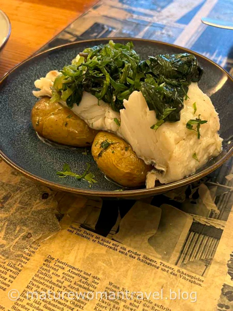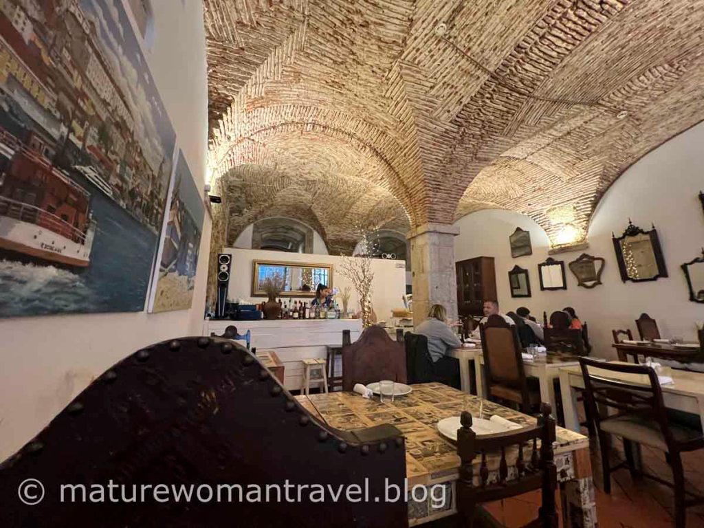 走了許久該找美食補充體力,O Português Chiado餐廳位在快接近河邊的巷弄裡,下午三點用餐人較少,沒訂位可以直接入內用餐,復古風格搭配拱型屋頂氣氛很好。服務人員親切解說,當我們告知希望食物不要太鹹時,他表示葡萄牙有規定醃漬鱈魚不能過鹹,我們也放心些,果然沒踩雷,美味可口。葡萄牙的食物和西班牙有點相似,以海鮮為主:鱈魚、章魚、蝦等,口味也差不多。
