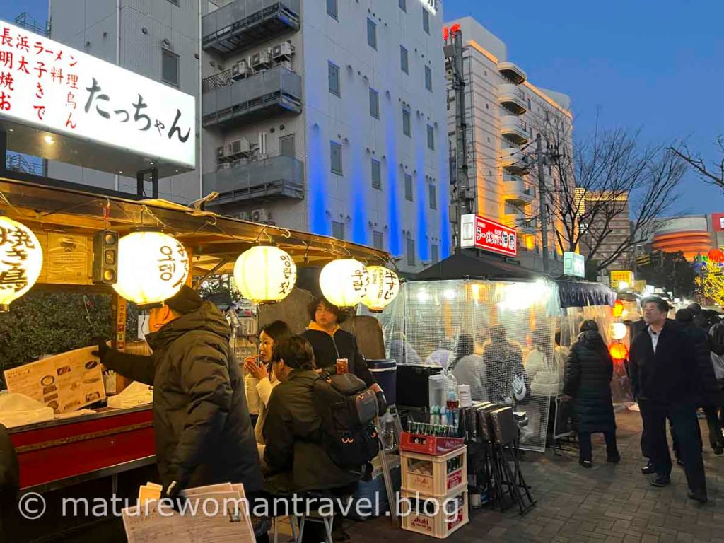 3公里的路程,散步約1小時,回到西鐵柳川站搭火車回福岡天神站,再散步回博多車站,途經中洲河邊屋台,各式拉麵、燒烤攤位,像台灣夜市很熱鬧。路過博多運河城商店、餐廳林立。