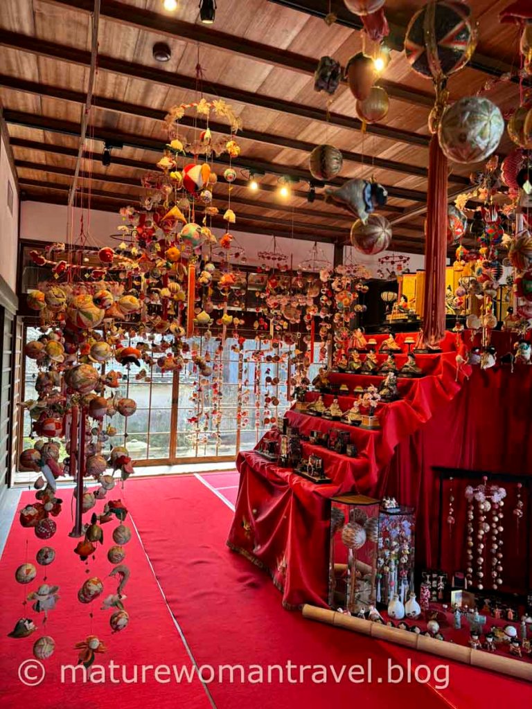 柳川藩主立花家史料館在下船處附近,門票包含史料舘、西式洋宅及松濤園。適逢3月女兒節,洋宅房間擺放許多華麗人偶,愈多層人偶代表其家族地位愈崇高。像風鈴般一串串布製花朵或動物造型,掛滿整個房間,製作精美色澤鮮豔,是此地特有的女兒節吊飾。