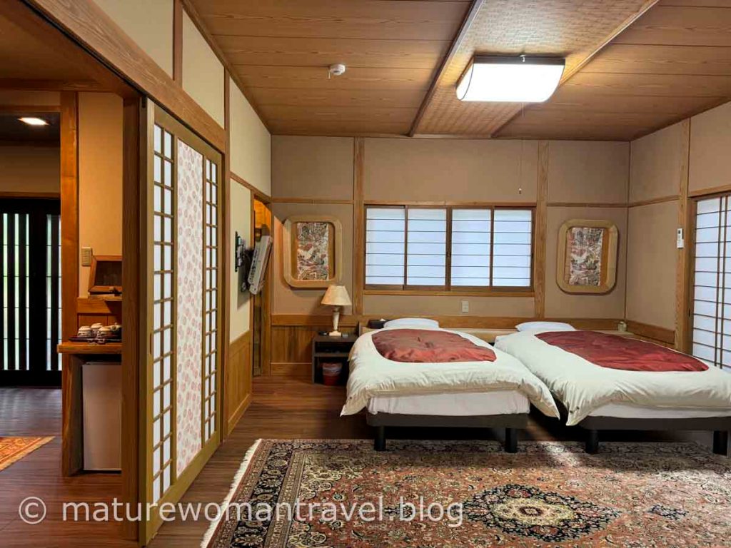 房間寬敞舒適,榻榻米地板溫暖潔淨,有私人半露天湯屋,在房間泡溫泉聽潺潺溪水,令人身心靈放鬆。