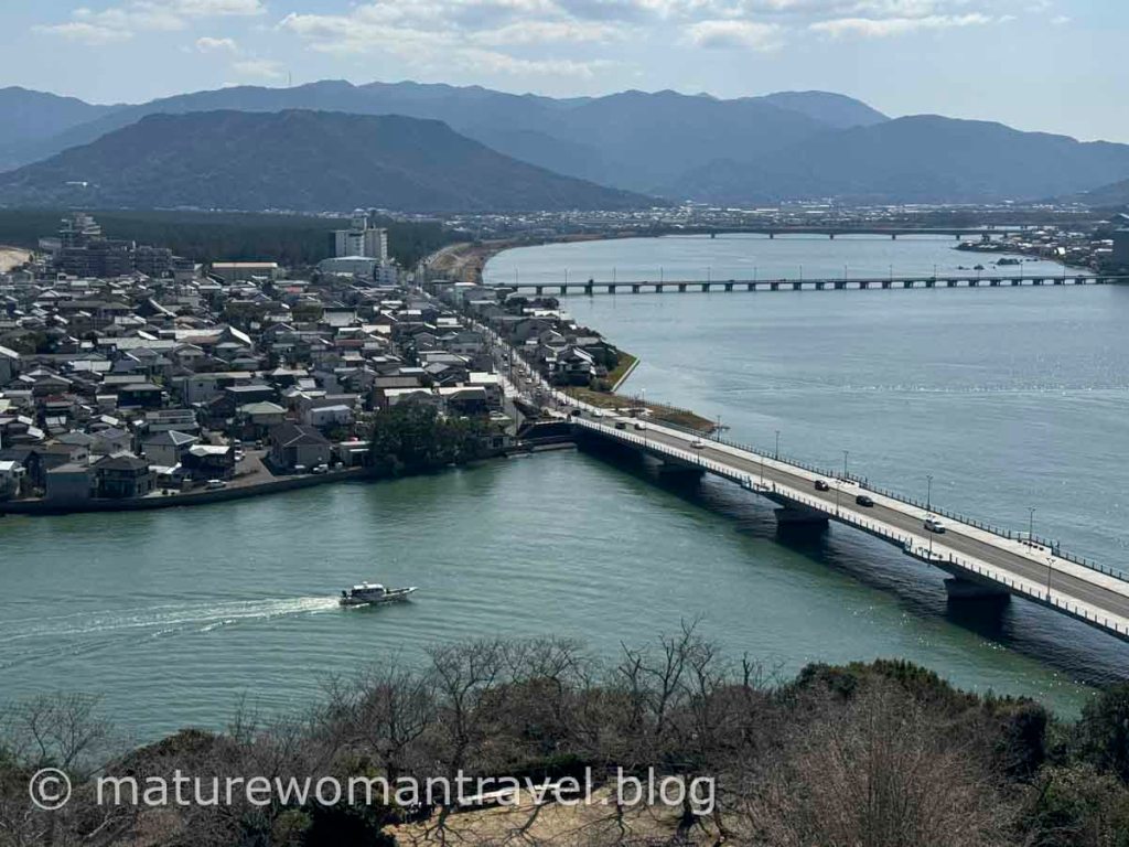 辦完退房手續將行李寄存旅館,步行10分鐘過橋到唐津城,知名度雖不如熊本城響亮,但雄踞在唐津灣高處,俯看壯麗海景及唐津市區全景,虹之松原及三面環山景致優美。
