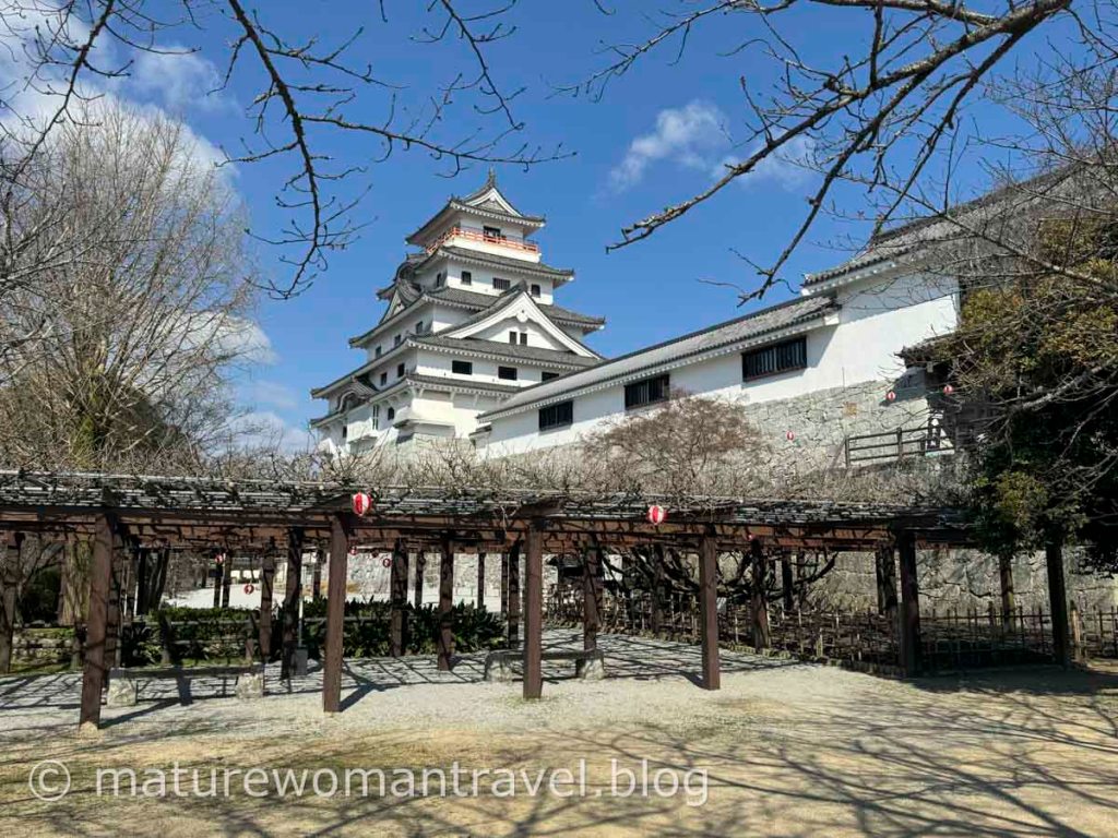 爬階梯有點辛苦(可付費搭電梯),三月初櫻花及紫藤還沒開,天守閣內展示唐津城的歴史及沿革,為早期與國外通航貿易港口,因地理位置重要,成兵家必爭之地。整座城維護的相當好,每一塊石頭都編號管理。