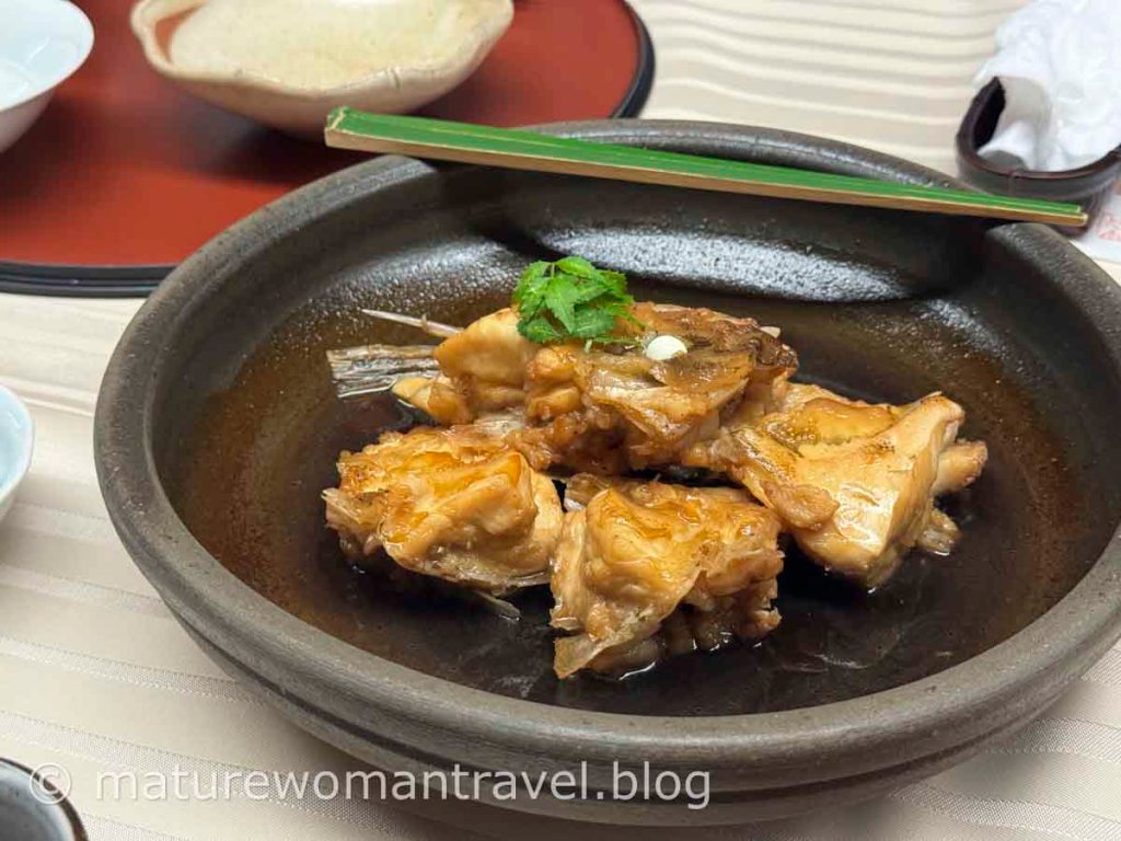 旅館派車來唐津車站接,抵達旅館時有多位穿著正式和服的女將在門口迎接,正納悶沒下雨地上為啥是溼的?原來地上潑水是歡迎客人的儀式。進門換拖鞋引導走過木地板廊道,天氣冷廊道設置幾座爐火取暖,日式庭園造景松樹錯落有致,錦鋰悠游其間,房間寬敞雅緻,溫暖的榻榻米地板,坐在窗邊吃著旅館準備的茶點,欣賞庭園景色,令人身心放鬆。