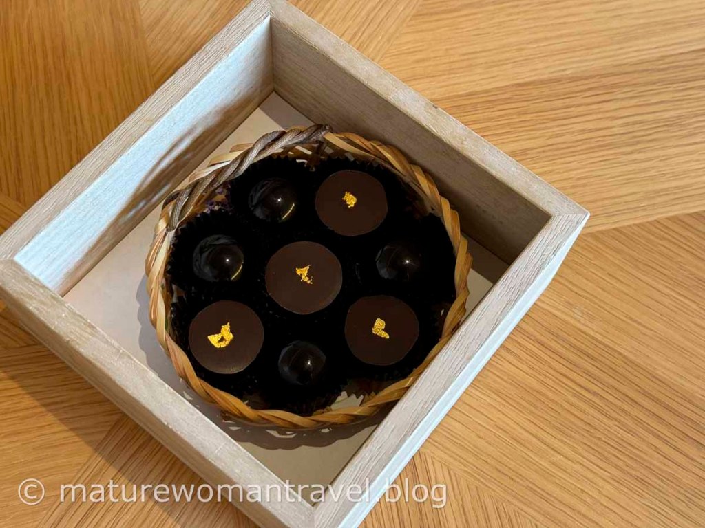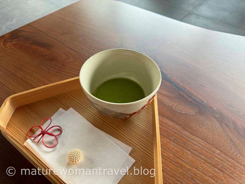喝著迎賓抹茶,大廳提供精緻的甜點和飲料,房間桌上精緻高級的巧克力,令人忍不住嚐看看,香濃入口即化。