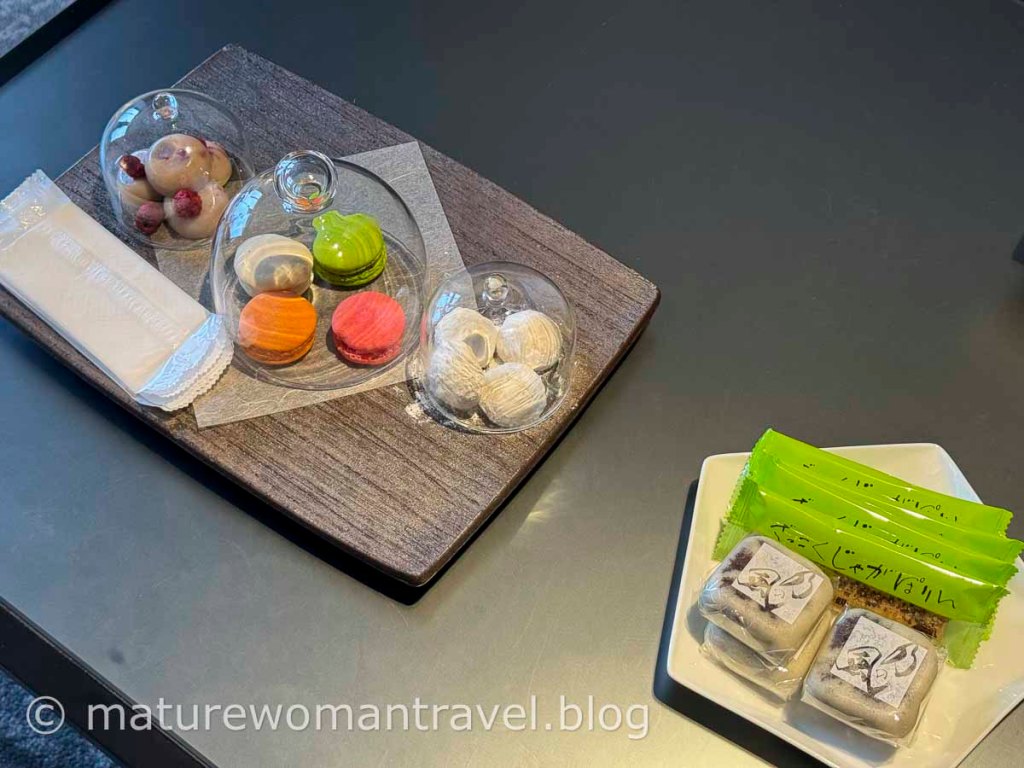 除房間內提供飲料、點心外,1 F大廳設有行政套房Lounge ,得刷房卡進入,在下午及晚餐後提供飲料、精緻點心。