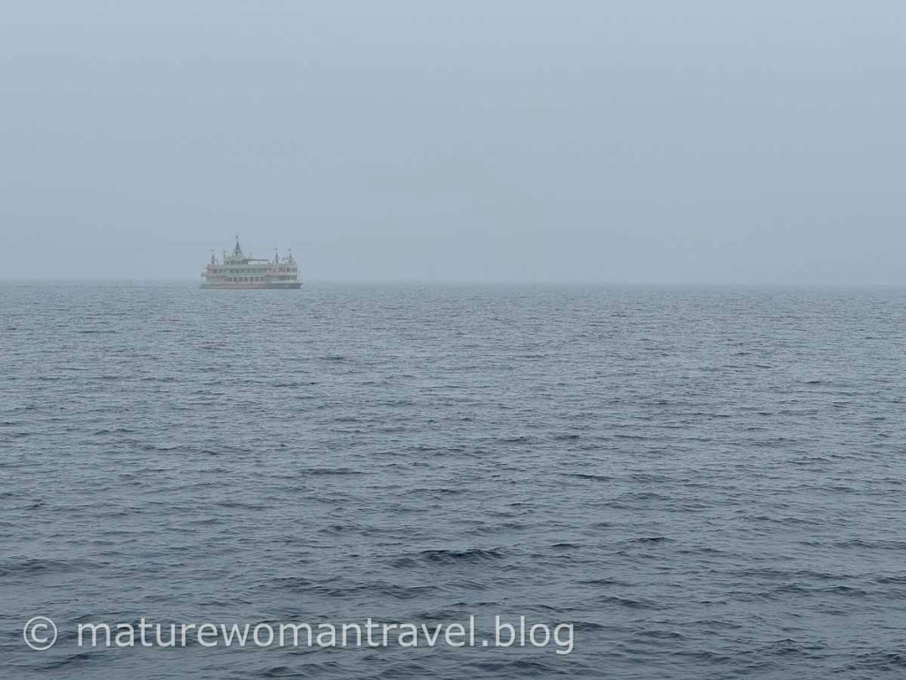 冒雨走到湖邊散步,遊客不多,見碼頭停靠的遊船正準備啓航,還搞不清楚去哪?就買票跳上船。可能是中午又下著雨。整艘船只有我們一家人。船駛離岸邊,湖邊的飯店漸漸變得糢糊。