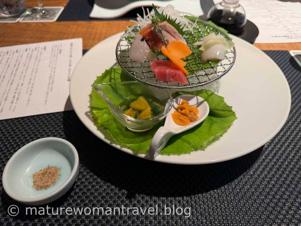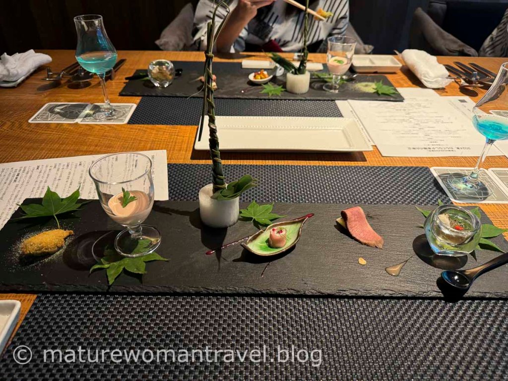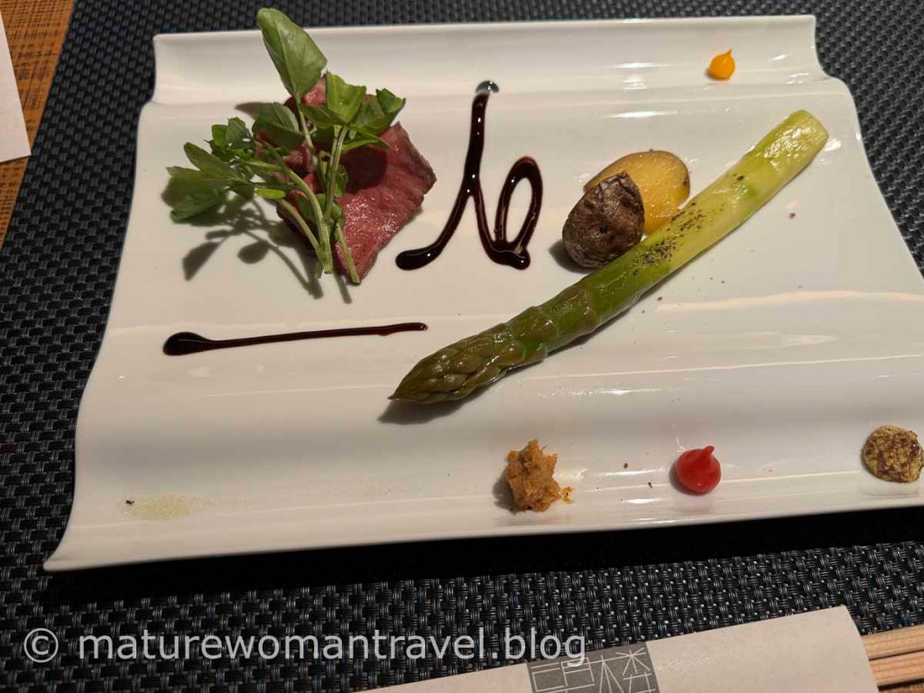 泡湯後最期待的晚餐在有窗景的包廂內用餐,好的廚藝對溫泉飯店有加分效果,望樓的晚餐日式混搭洋式的創意料理,運用當地季節食材呈現美學與美味。
