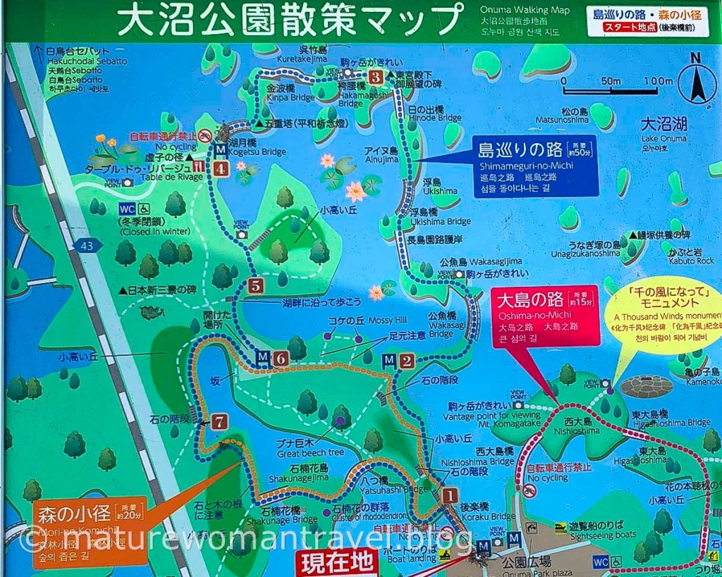 在等待夕陽前決定先到大沼公園散散步,公園步道比想像範圍大很多,有許多橋連接各小島。