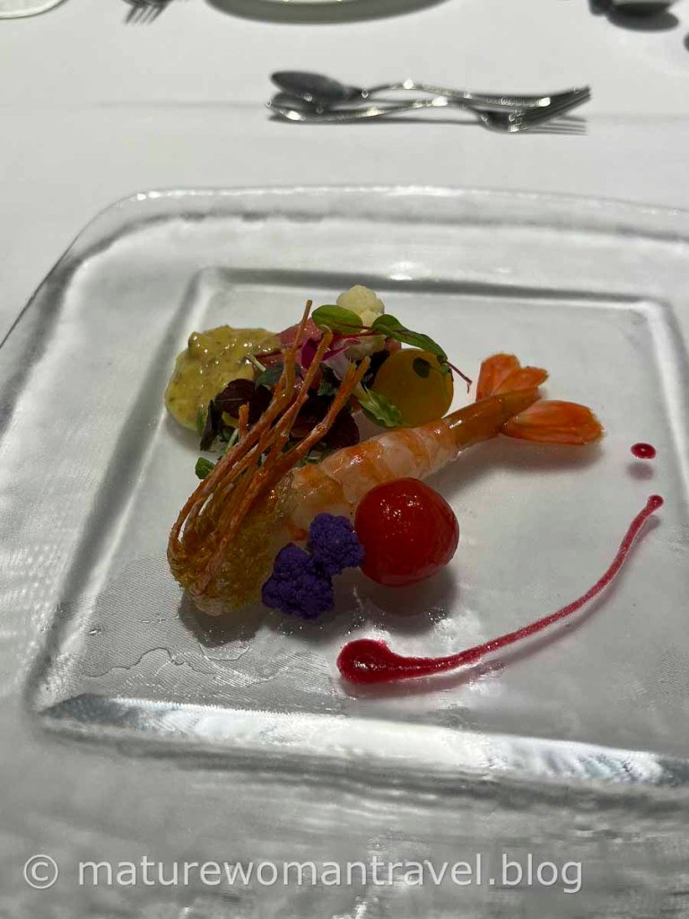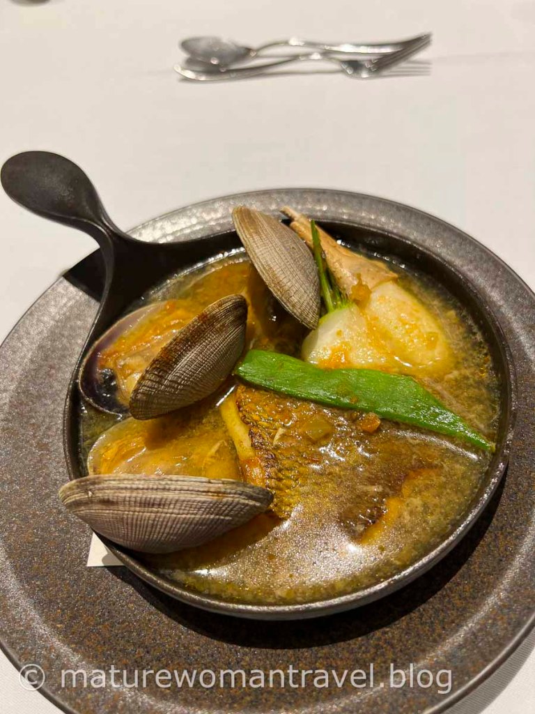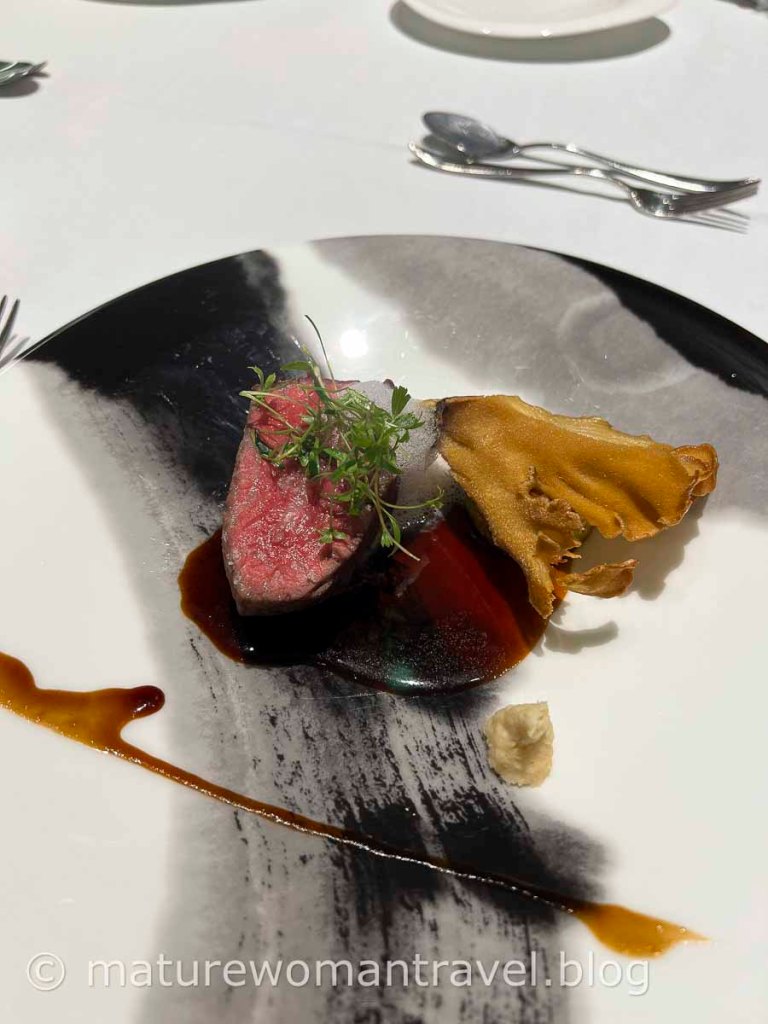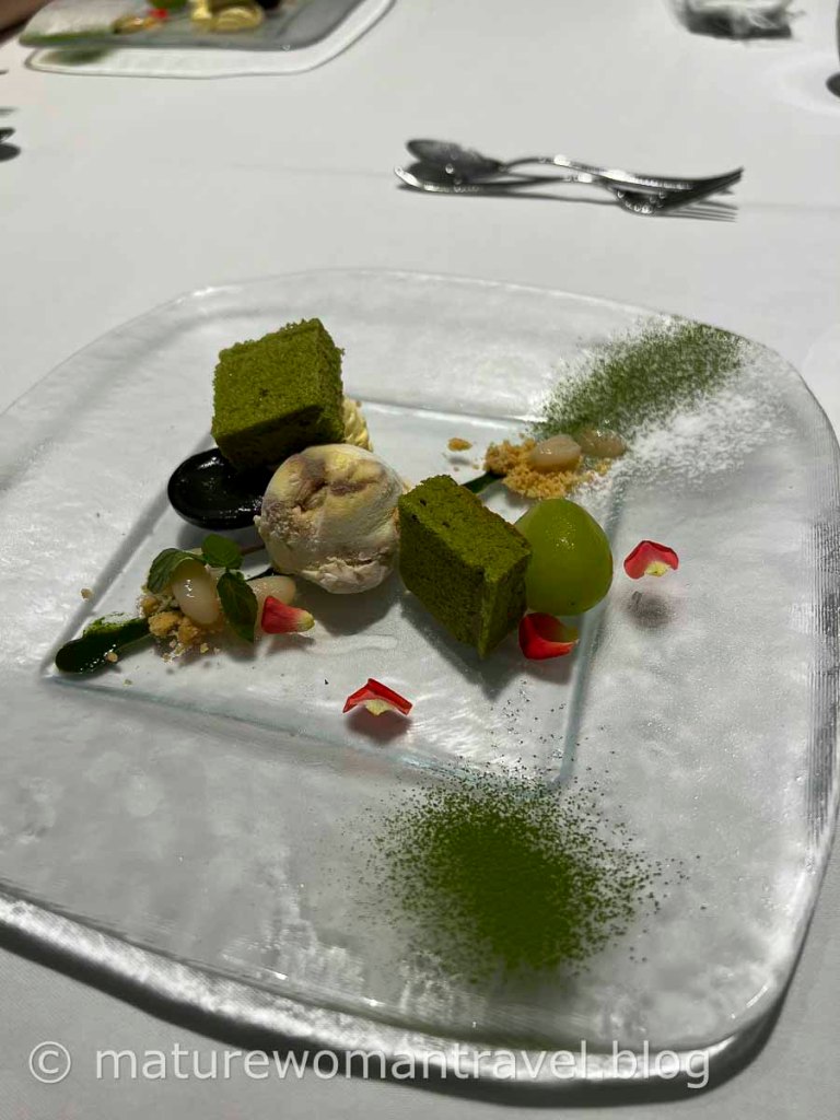 期待的法式晚餐,坐在面向花園的落地窗前,享用主廚為我們更換和前一天完全不同菜色,佳餚美饌,道道完美呈現。雖然到訪過歐洲許多國家(包含法國),但沒想到吃到最優質的法式料理,竟然在北海道函館大沼鶴雅飯店。