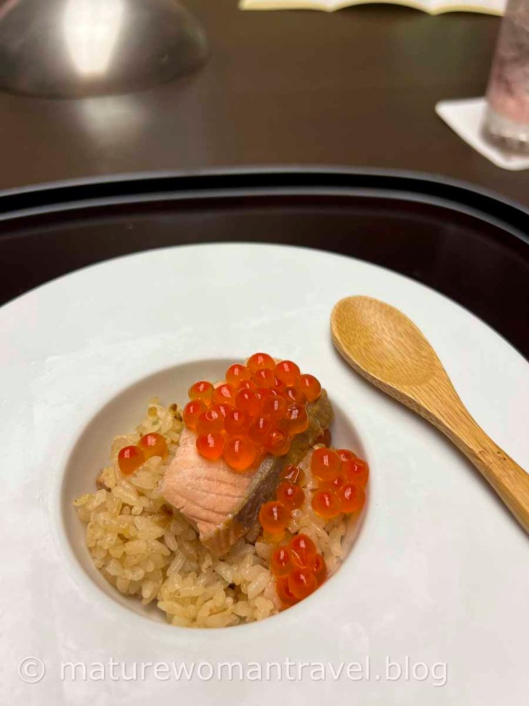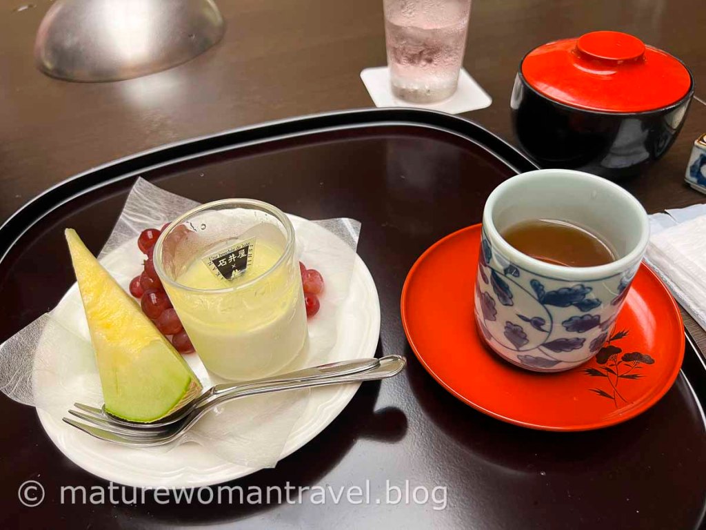 晚餐在宴會廳用餐,因疫情以布簾區隔,懷石料理挑選當令食材,採用仙台黑毛和牛、當地生產的秋保米,主廚精心烹調,套餐相當豐盛。可惜其中鮑魚不夠新鮮,美中不足。