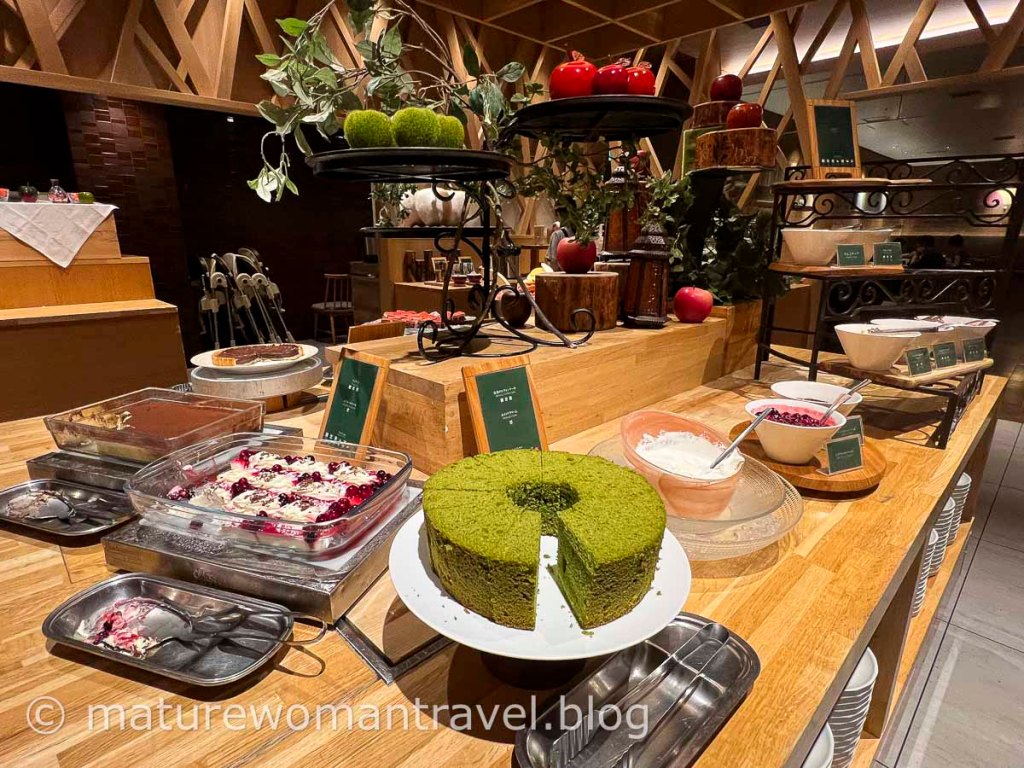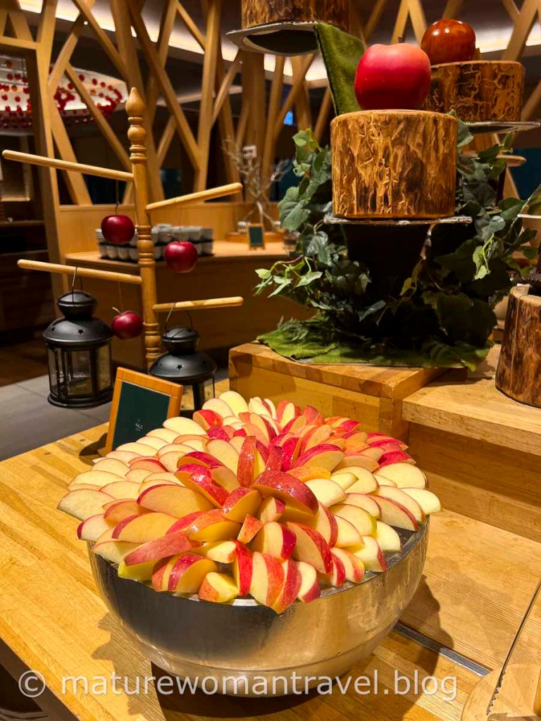 泡湯後肌腸轆轆,依預約場次到青森蘋果廚房,充滿蘋果魅力的獨特自助餐廳。提供各種色彩繽紛的菜餚,生魚片、干貝等海產新鮮美味且擺盤美觀,多款精緻甜點忍不住都想嘗嘗,當然還有許多道蘋果菜餚,不同品種的蘋果汁依酸甜度排列任君挑選。