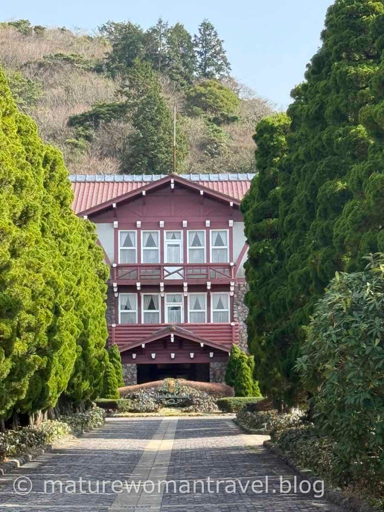 飯店提供雲仙地獄附近的地圖,沿著道路走一段在路口向右轉,溫泉旅館錯落其間,隱身在兩排柏樹的雲仙觀光飯店,歐式風格建築相當吸引目光。