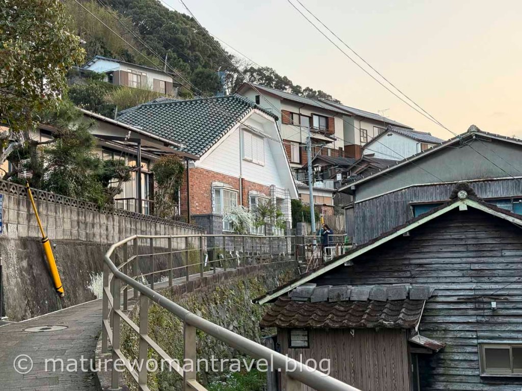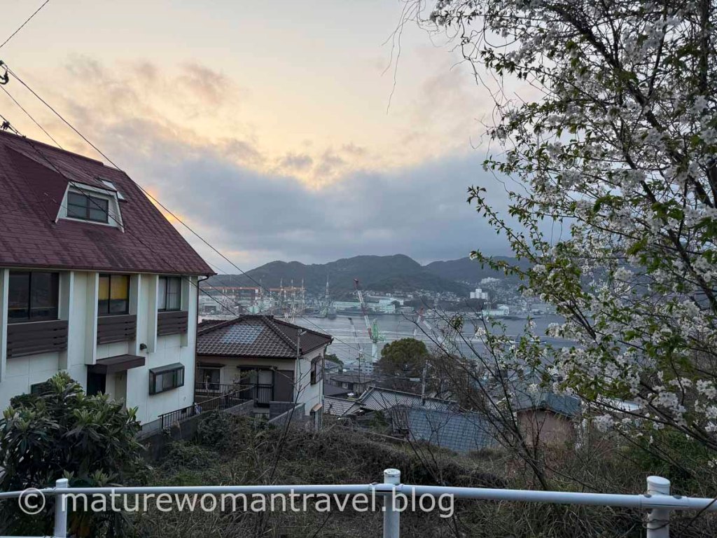從雲仙溫泉搭巴士下山,在諫早車站轉搭西九州新幹線列車前往長崎,長崎為終點站,新幹線車站與JR車站並列,出口皆面向長崎港,港區山坡地形房屋階梯式的櫛比鱗次排列。