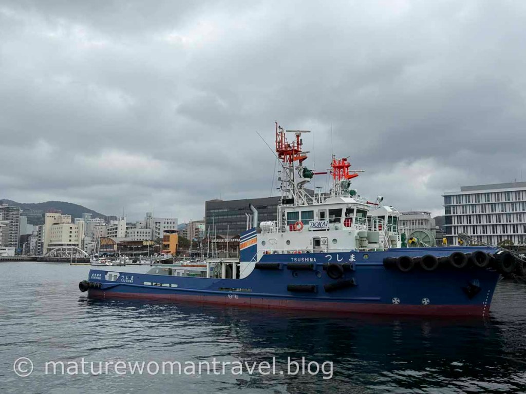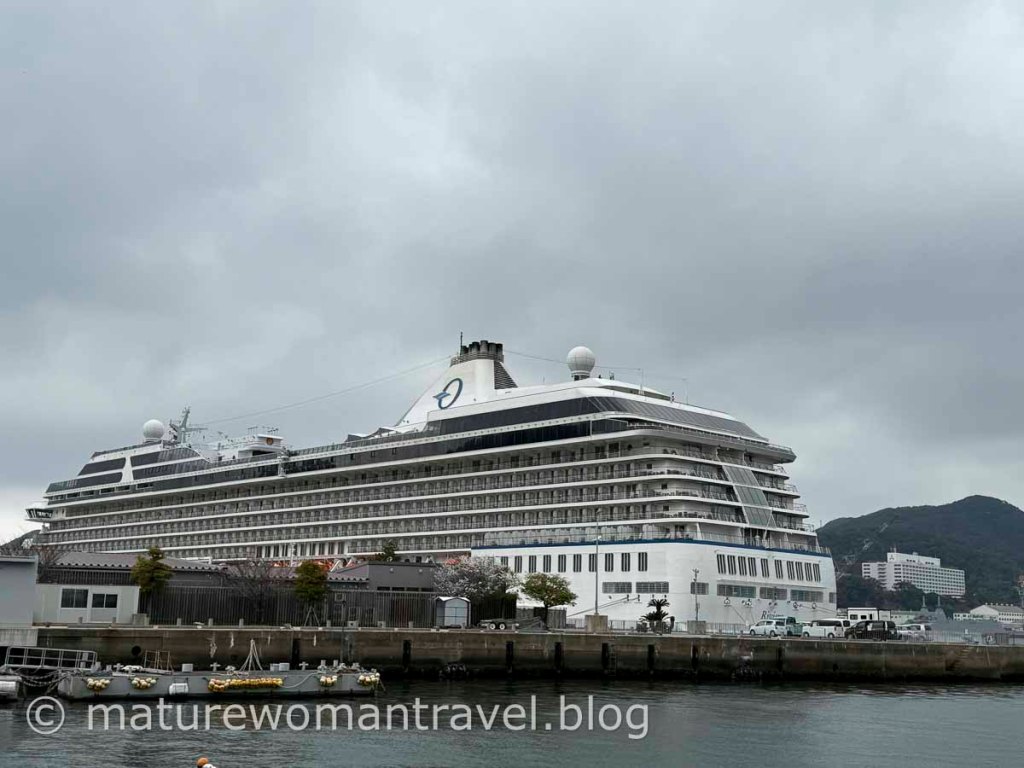 順著坡道下山來到長崎港區,豪華郵輪停靠在港邊,為長崎帶來衆多的國際遊客。