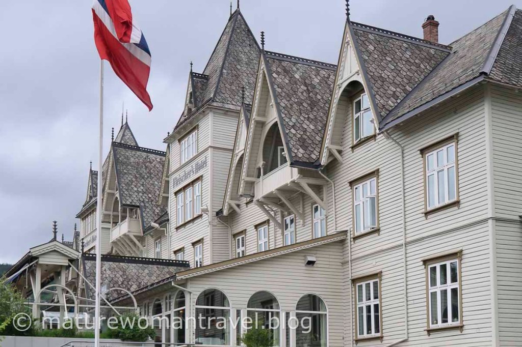 火車抵達沃斯,下車的旅客皆拖著行李趕往巴士站,前往松恩峽灣的接駁巴士正停靠在車站旁,也是我們明天搭車的地點。此時我們跟人群反向走出月台,今天住宿的弗萊舍飯店與車站彼鄰。