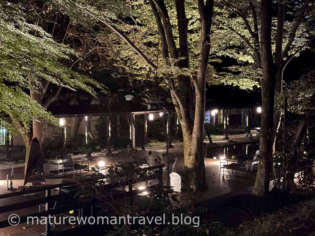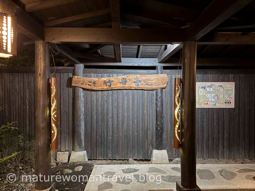 竹樂亭俵山溫泉旅館隱身在林木間,初秋的南阿蘇夜晚已有寒意,旅館透出的燈光令人感到溫暖。因抵達機場時已知會飯店晚一點到,才進門服務人員馬上引導我們到餐廳,行李會代為送到房間,如釋重負可以好好在包廂享用晚餐。