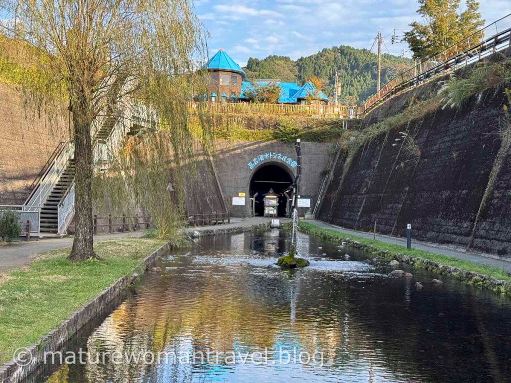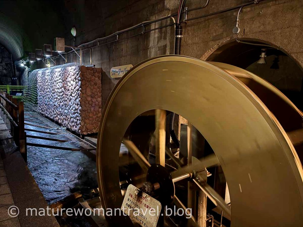 入隧道參觀門票每人300日幣,沿著流水潺潺的湧水渠道兩側走,原擔心進入隧道會冷,雖然空氣較潮濕,但反而比戶外溫暖些。