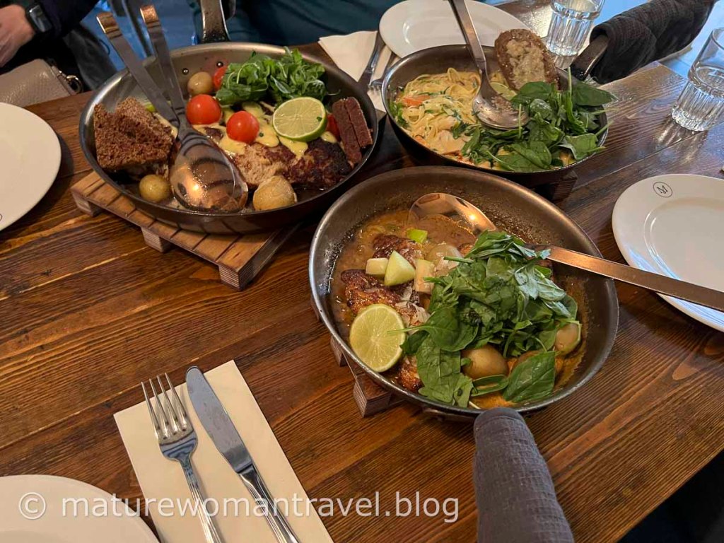 Messinn餐廳的特色是食物用平底鍋盛裝,豪邁又新鮮美味,4人只點3份餐分享,相當有飽足感,推薦當地盛產的鱈魚泥新鮮美味。