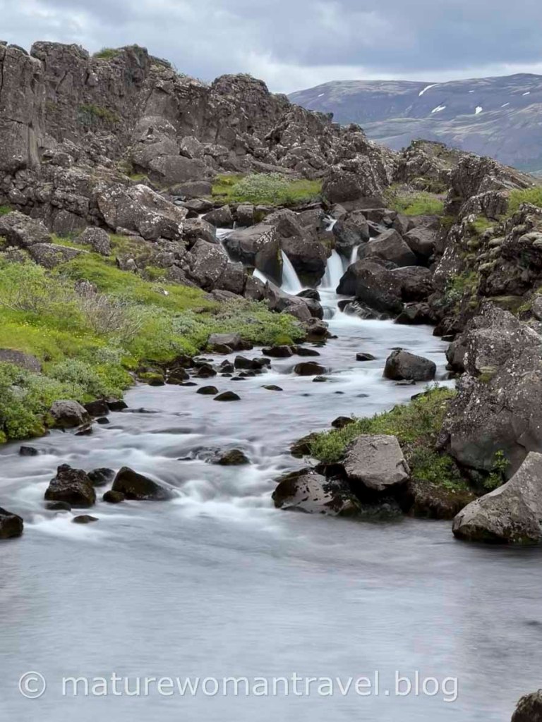 Snorri’s booth有陸地上歐亞版塊、美洲版塊裂縫的景觀,跟著人群向上爬到頂,階梯左側看似不起眼的岩石裂縫,就是兩大版塊的裂縫處。