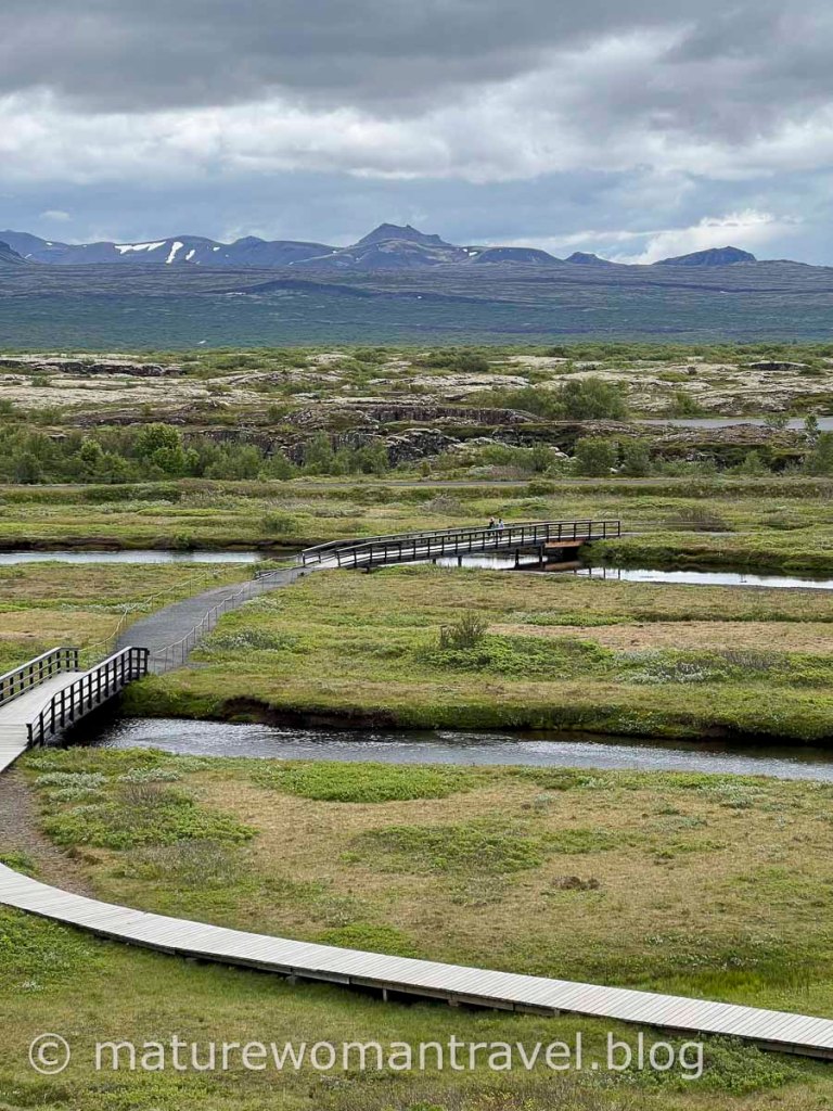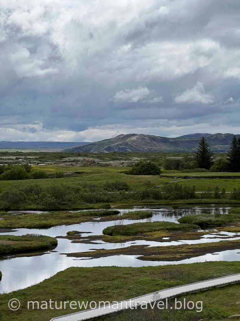 在附近的Öxarárhólmi爬上平台俯瞰寬闊的河景,翠綠的草地原野綿延至遠處山峰,優美景色盡收眼底。