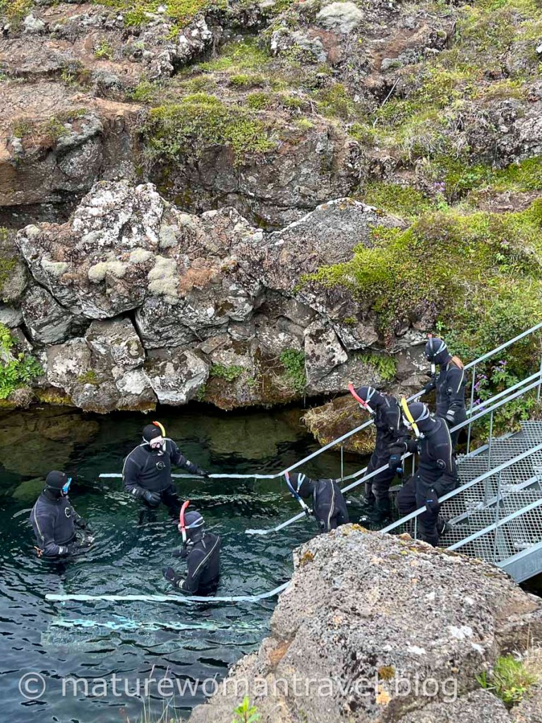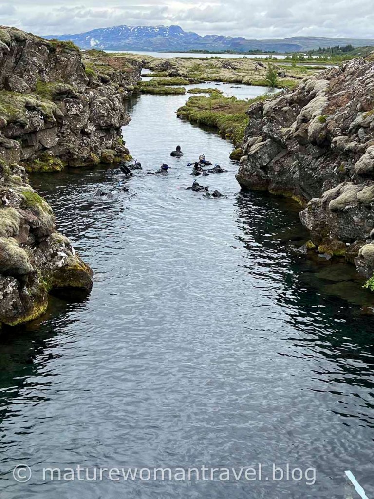 行駛約1小時後抵達位於辛格瓦德拉湖北側的史費拉 Silfra ,最大特色是全世界唯一一個可以在兩個板塊之間浮潛的地方,而這兩個板塊分別為「歐亞板塊」與「美洲板塊」,裂縫內部時而寬廣,時而狹窄陡峭,可以感受同時觸及兩塊大陸的神奇之旅,這條裂縫每年持續以 2 cm 的速度慢慢分離中。