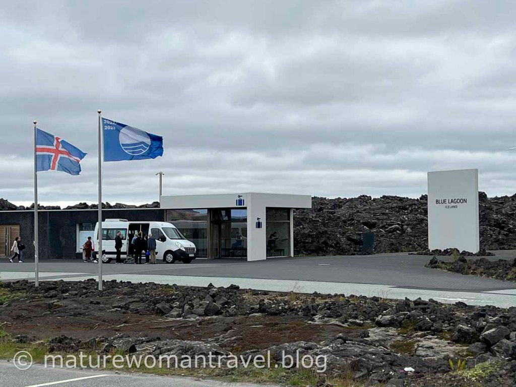藍湖是此行最後一個景點,行經廣闊的火山熔岩地形,路旁大大小小黑色石礫,彷彿來到外星球 ,見前方旗幟飄揚,藍湖入口到了。