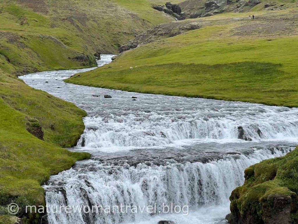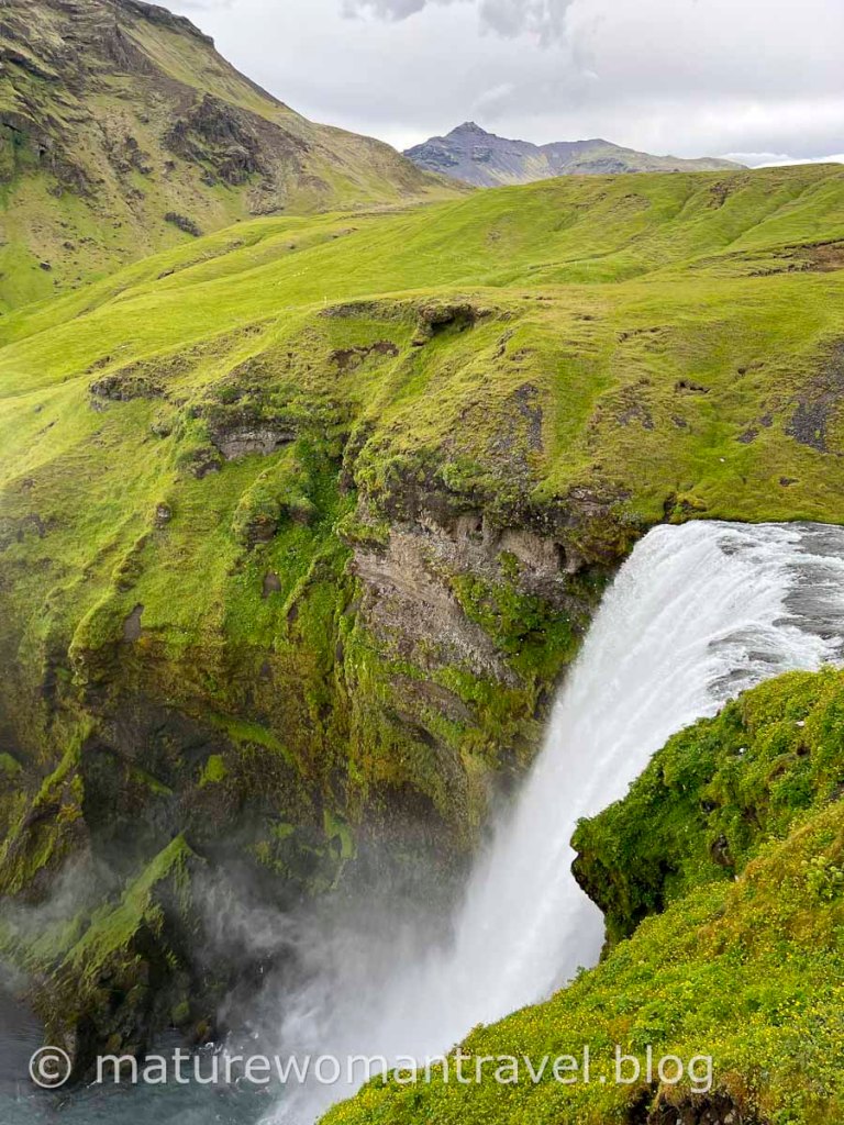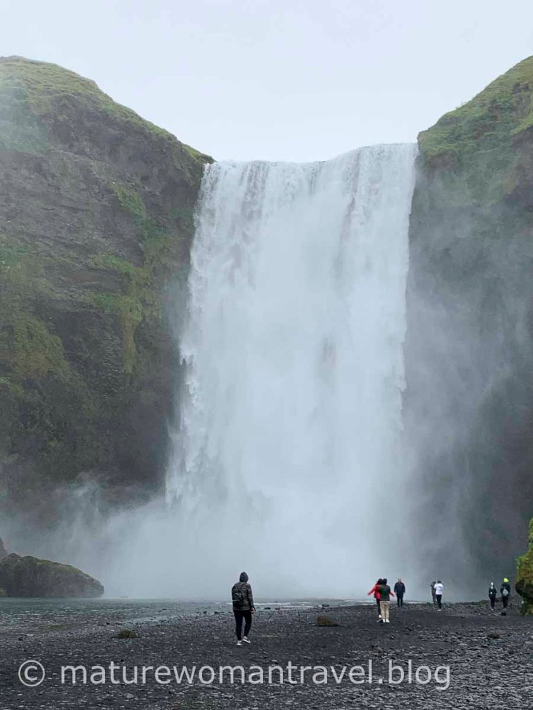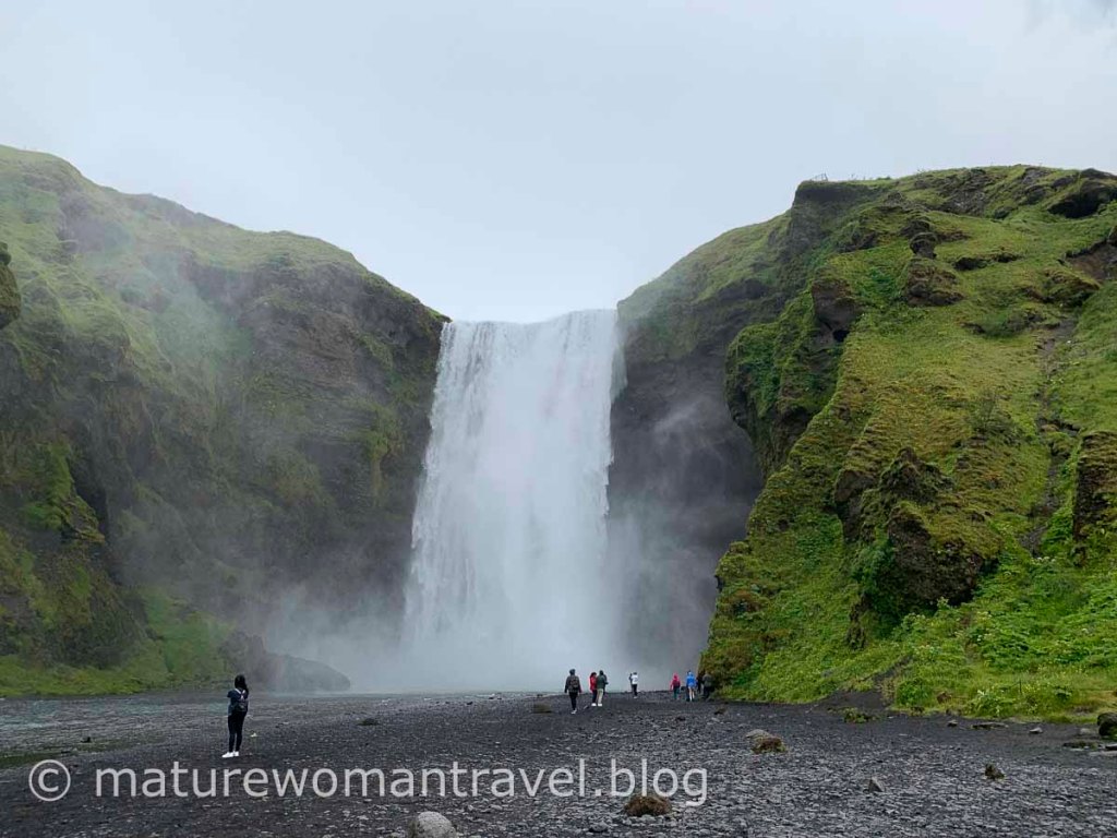 從維克返回雷克雅維克沿途有許多瀑布,史可加瀑布是其中較大且受遊客青睞的景點。在停車場可聽到轟隆隆的水聲,沿著河邊慢慢靠近瀑布,一陣陣的風將飛濺的瀑布水珠吹向遊客,很難不被噴溼。